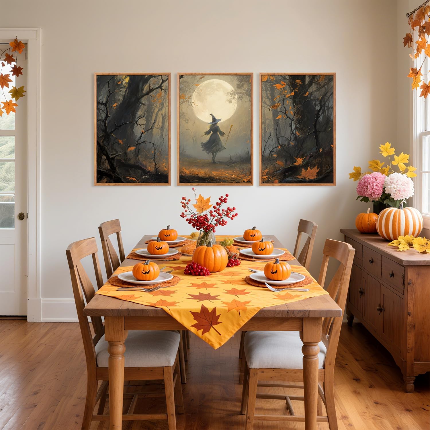 - As A Creative Wall Decor Gift for Home Office-- This moody black fall wall art can be a delightful present for housewarming, wedding, Motherβs Day, Easter, Halloween, Christmas, New Year and so on.