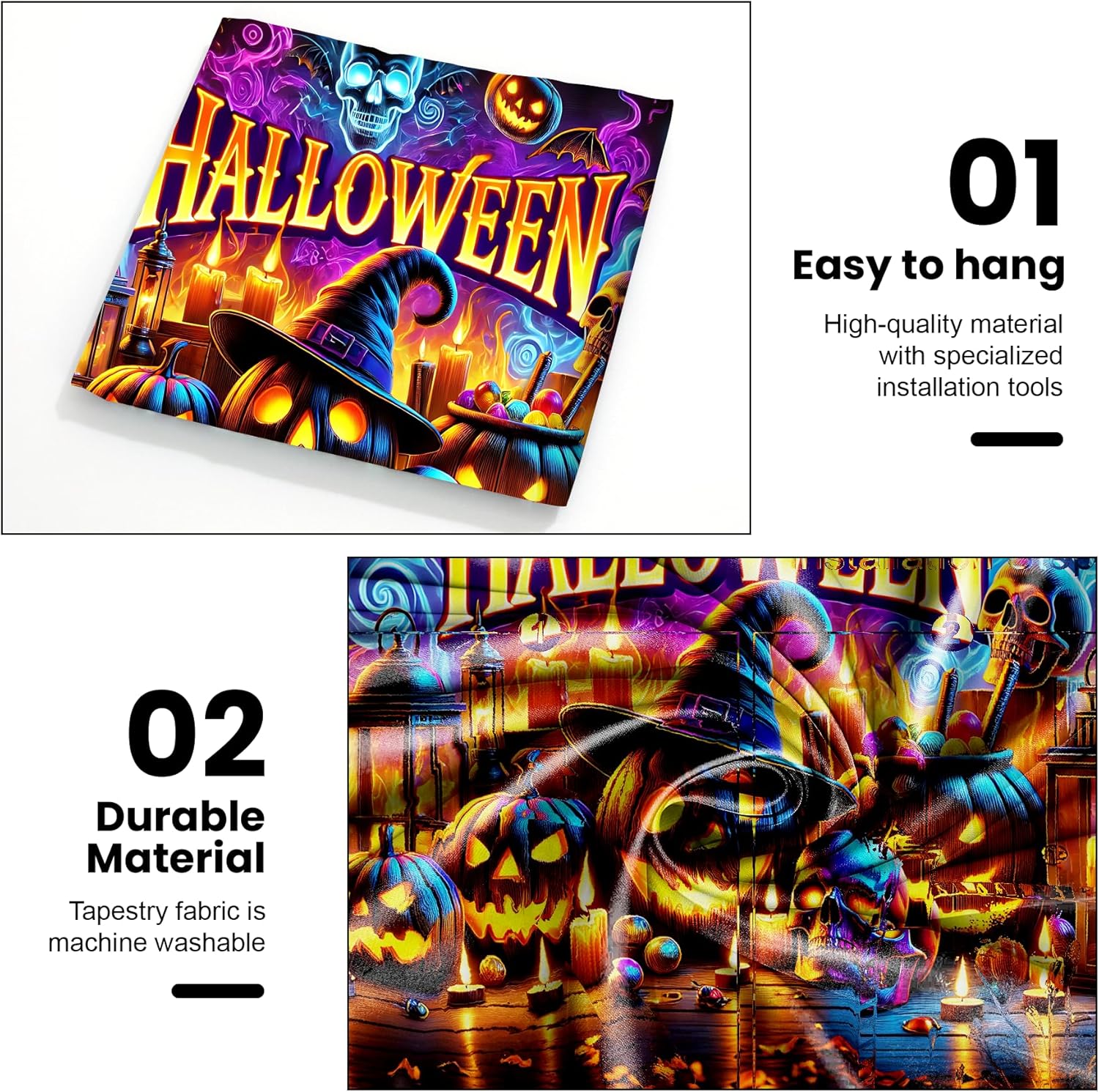 - 【Spooky UV Magic】This Halloween tapestry glows vividly under blacklight, creating an eerie, eye-catching display perfect for haunted houses, parties, or year-round horror-themed decor.