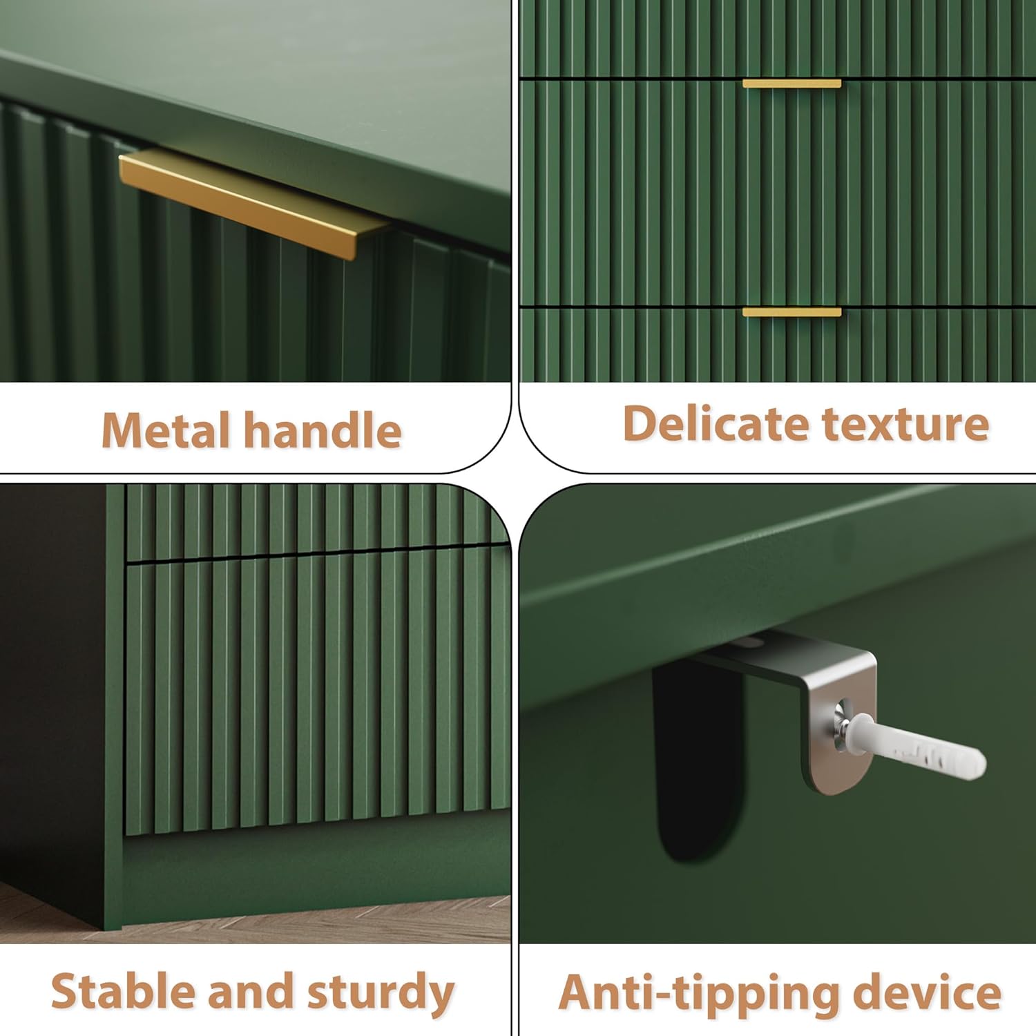 Green 7 Drawer Dresser for Bedroom, Modern Fluted Dresser with Gold Metal Handles, Wide Chest of Drawers for Bedroom, Living Room, Entryway, Hallway, 55.9" L x 15.7" D x 31.4" H