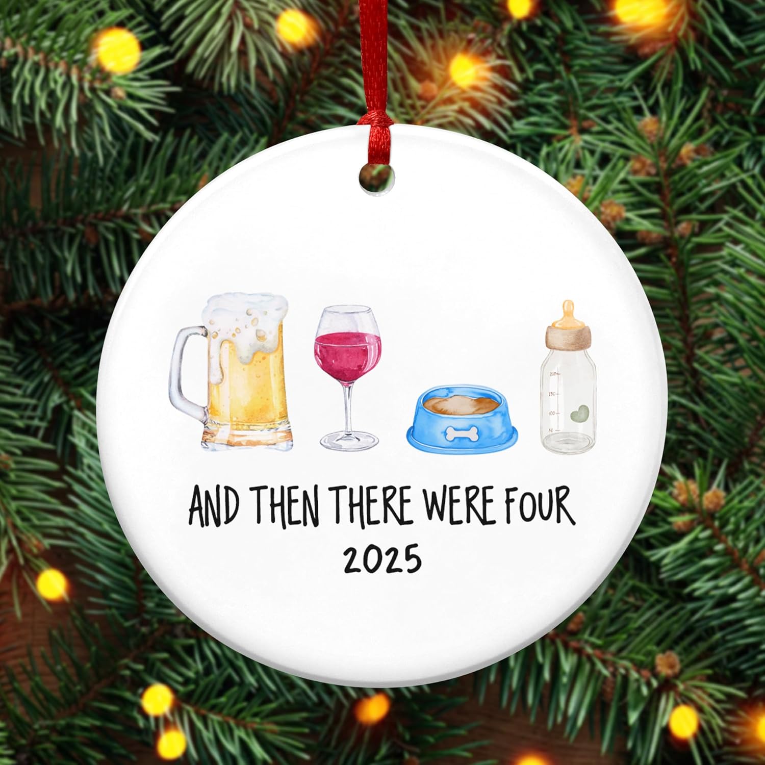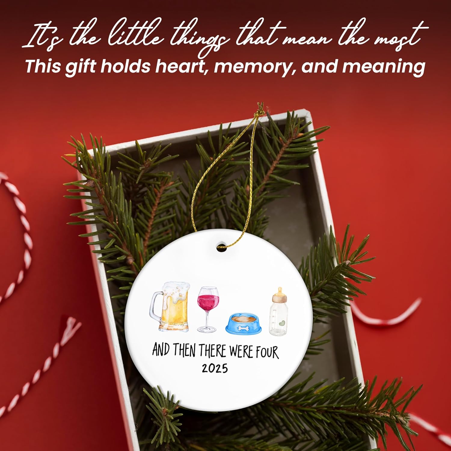 • BABY ANNOUNCEMENT ORNAMENT – Share exciting news with this meaningful coming soon baby announcement that also doubles as a new baby gift idea. Ideal as great grandparents baby announcement, pregnancy announcement for husband, or pregnancy announcement for aunt and uncle, it joyfully says, β€œAnd then there were four!” and marks a milestone year.