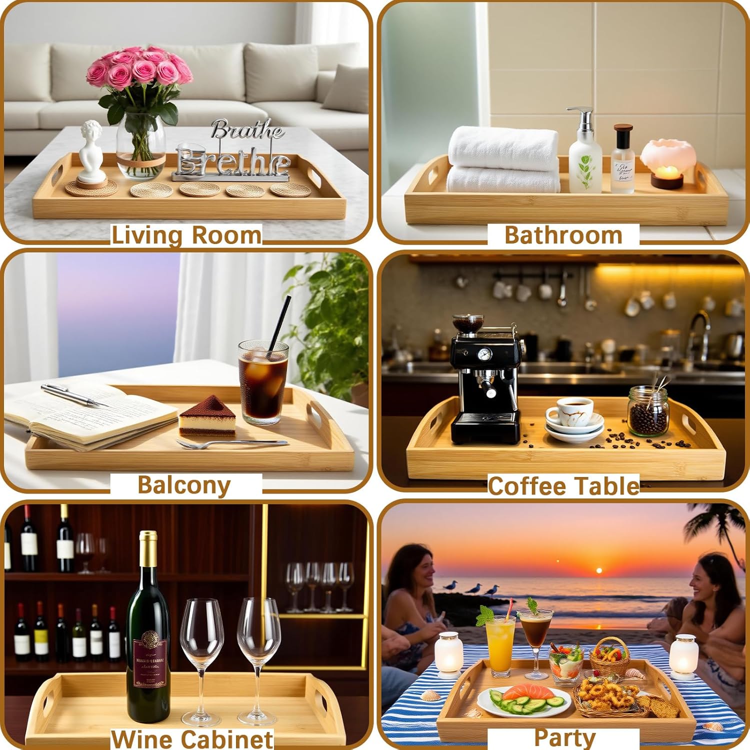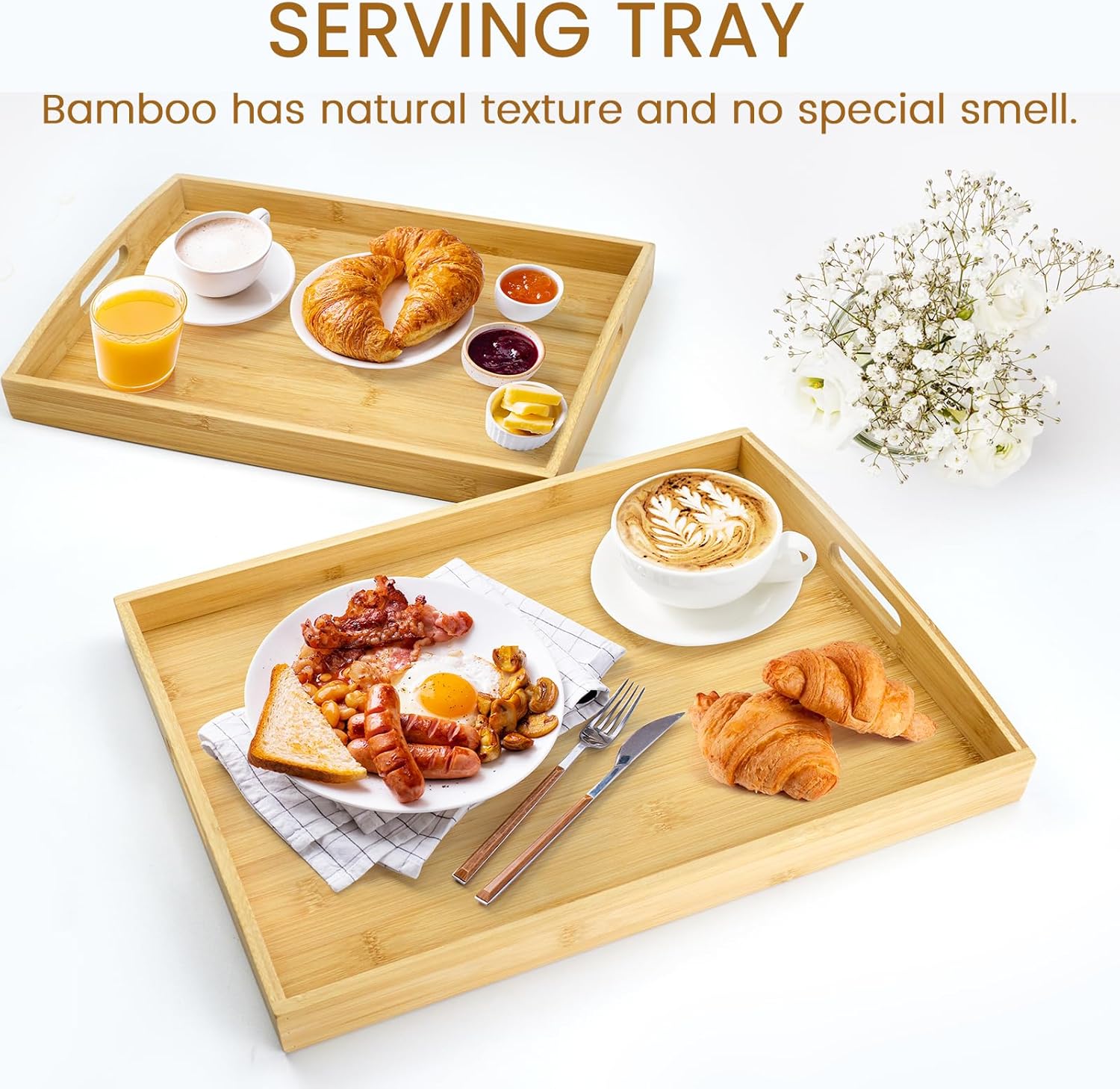 - Bamboo Serving Tray Set:The serving tray is crafted entirely from natural bamboo. This tray for coffee table is durable, sturdy, and designed for daily use at home or in restaurants, it resists cracking even after extended use