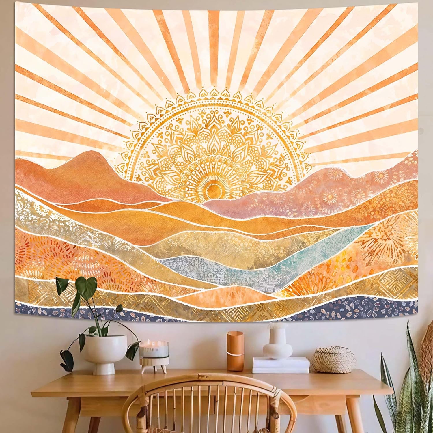 Lunerfex Bohemian Mandala Sunrise Wall Tapestry, Abstract Mountain Scenery Tapestries for Home Decor, Boho Tapestry 90x70 Inch