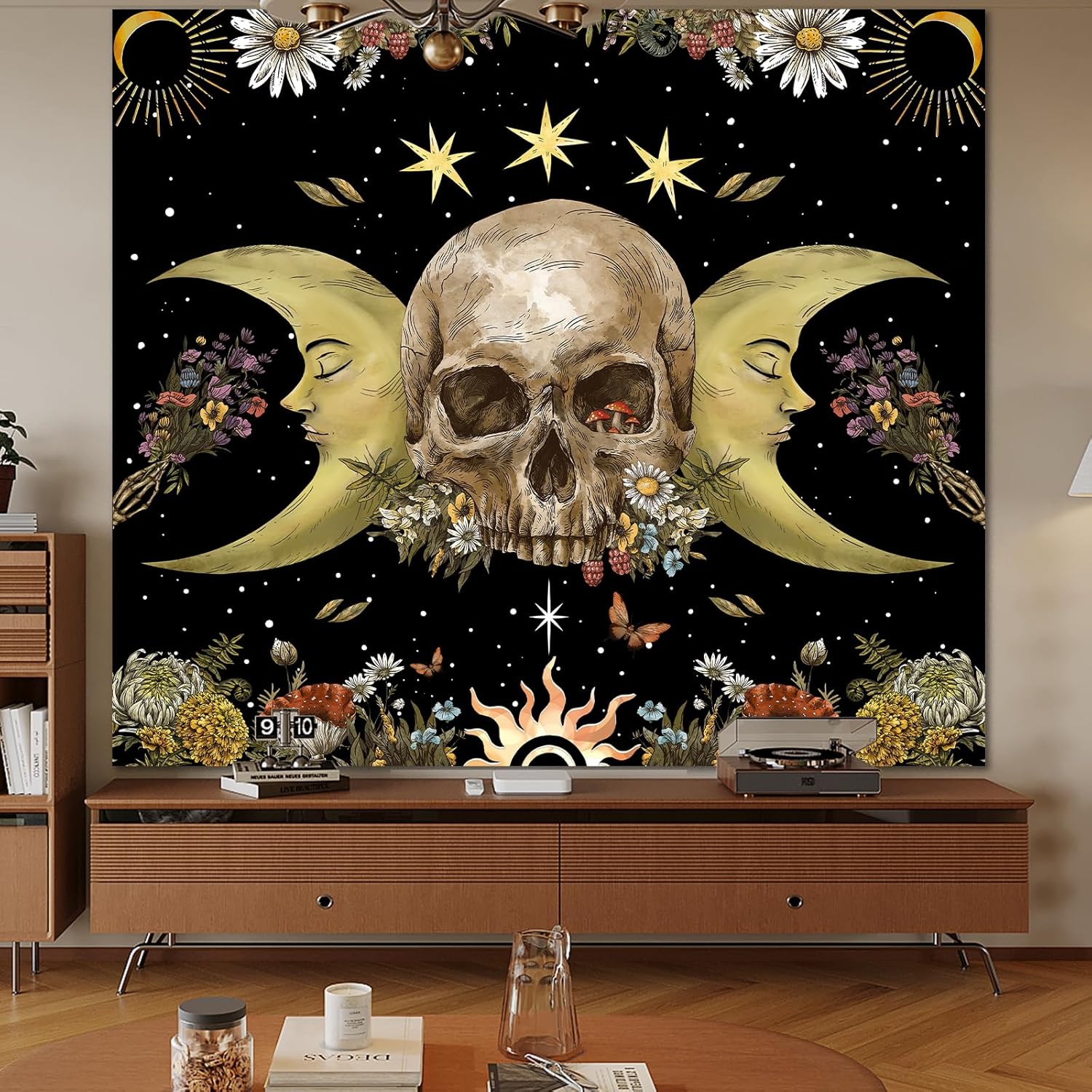 - [Gothic Tapestry Artistry]: Intricately designed with haunting skull motifs, celestial moon phases, and dark floral patterns, this wall hanging embodies authentic Gothic aesthetics for dramatic bedroom decor