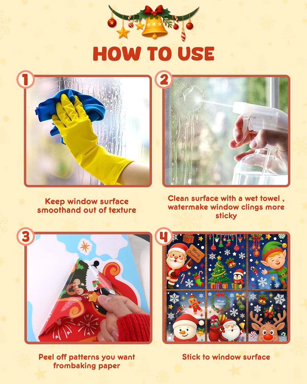 - Perfect Christmas Decor: These Xmas window clings are ideal for decorating windows, glass doors, mirrors, display cases, offices, schools, and stores. They're perfect for Christmas parties, winter festivals, and holiday-themed events. They also make a thoughtful gift for family friends or kids. Gather your loved ones to enjoy the fun of DIY decorating and create unforgettable seasonal memories together!