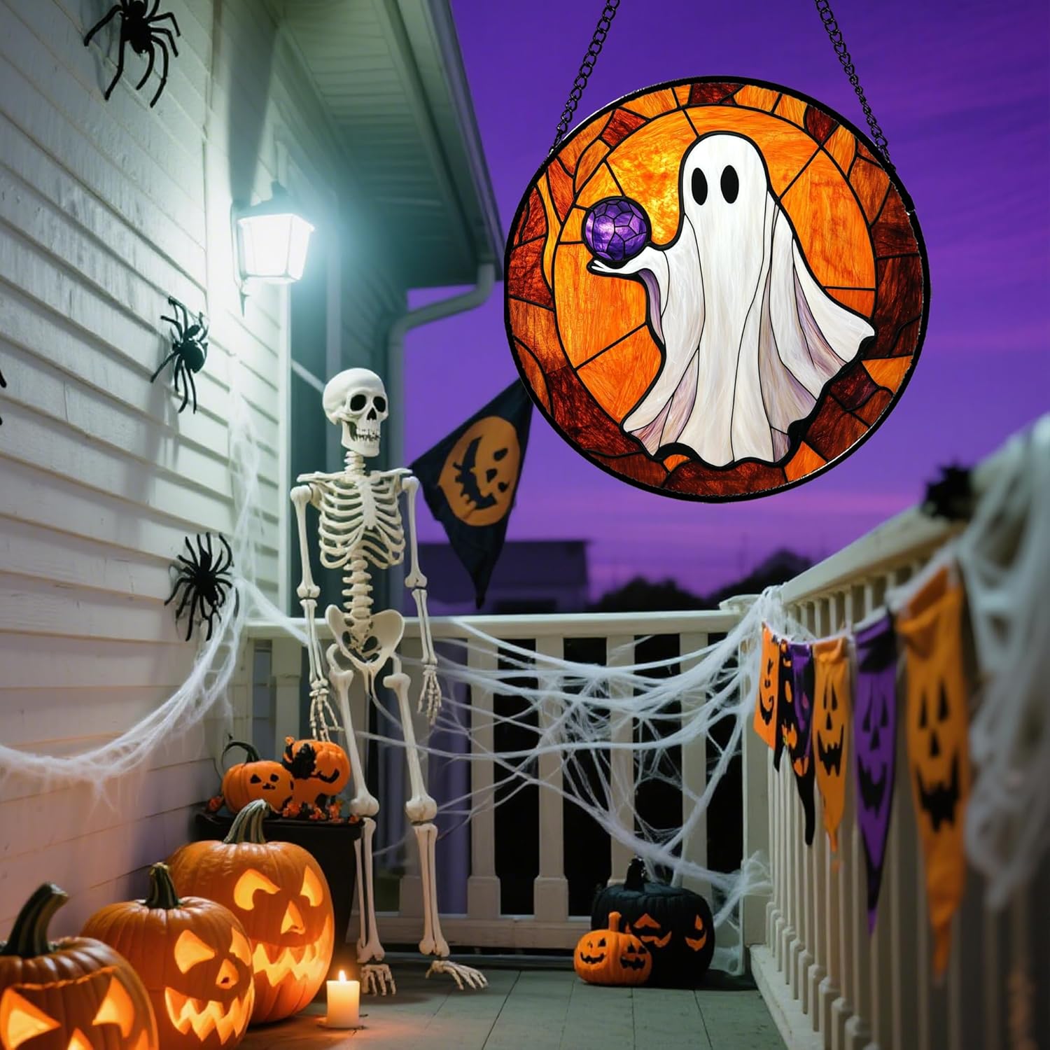 Stained Glass Window Hanging - Halloween Decorations Ghosts Vampire Suncatcher for Doors Garden Indoor Funny Spooky Sun Catchers Gothic Decor Horror Gifts for Women Men Friend 7.8 in