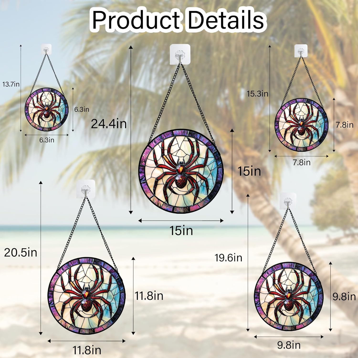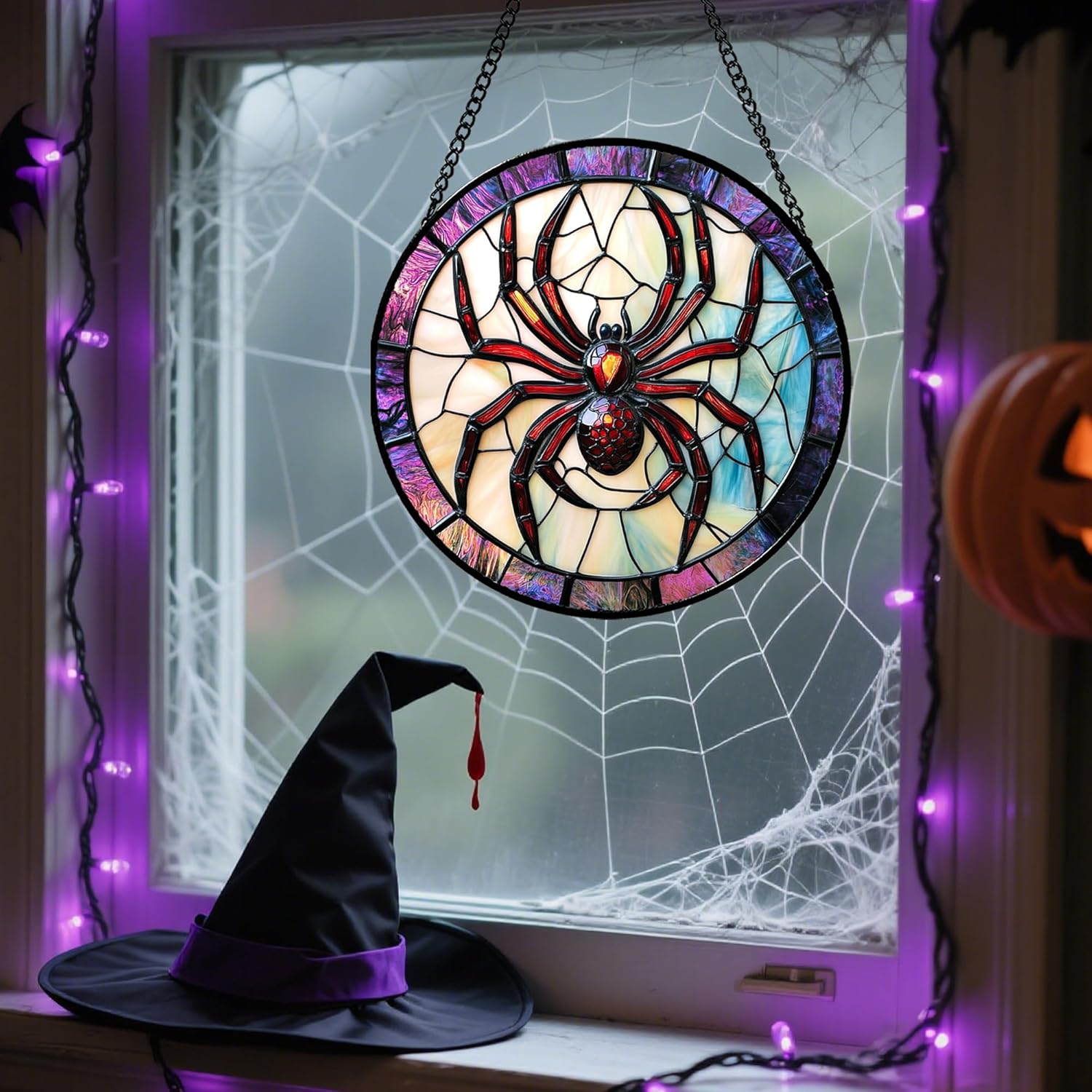 Stained Glass Window Hanging - Halloween Decorations Red Spider Goth Suncatcher for Doors Garden Indoor Funny Spooky Sun Catchers Gothic Decor Horror Gifts for Women Men Friend 15 in