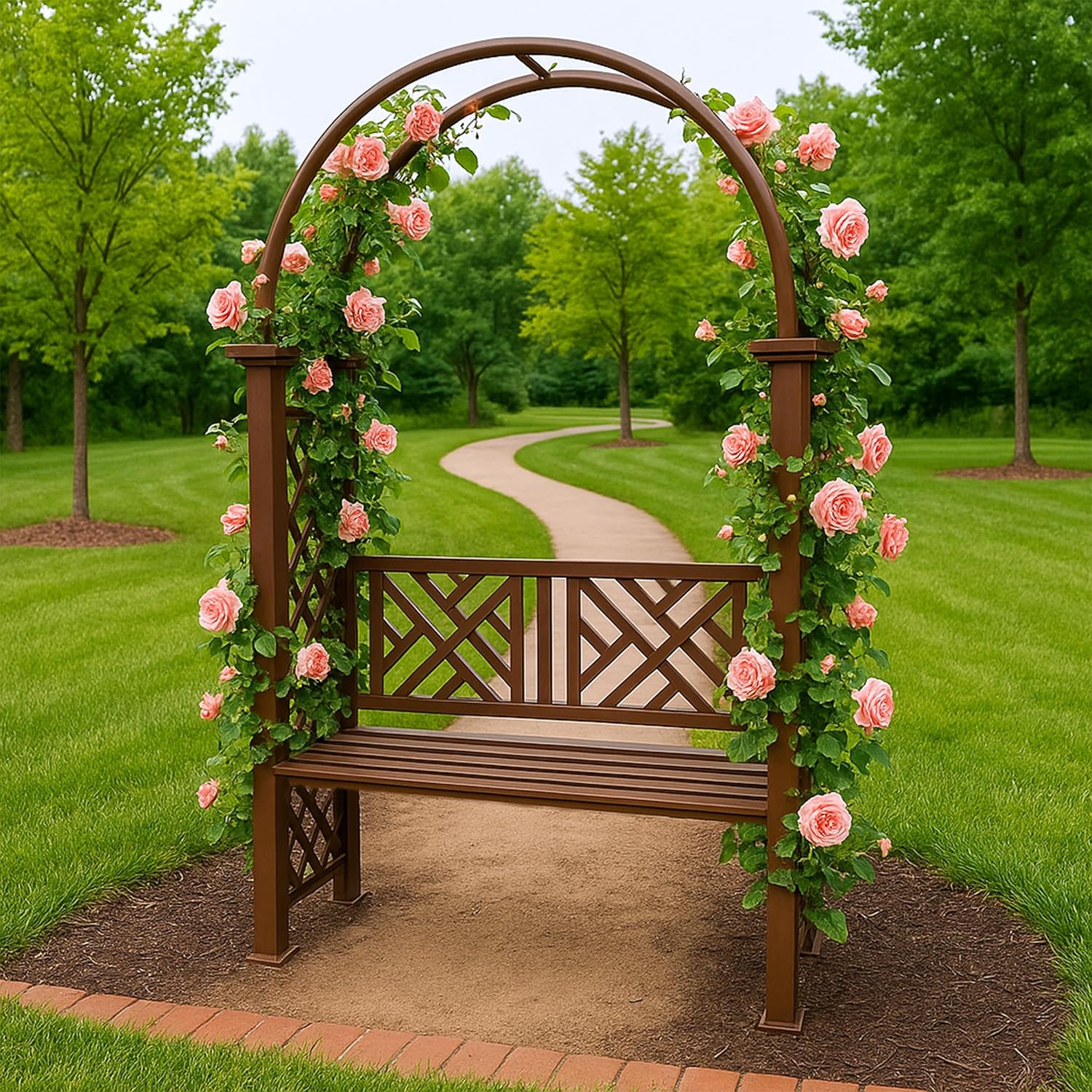 Brown Aluminum Garden Arbor Arch with 2-Seater Bench