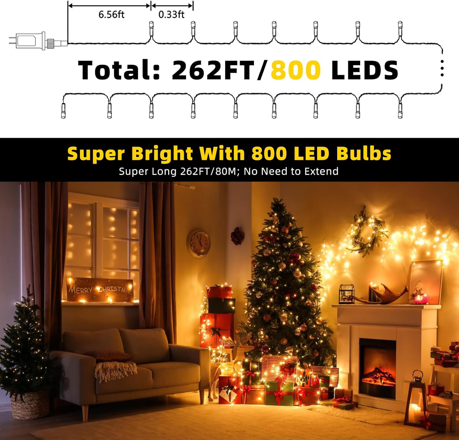 XTF2015 262FT 800 LED Christmas String Lights, Christmas Lights End to End Plug 8 Modes Memory Function with Timer, UL Certified Outdoor Indoor Fairy Light Christma s Tree, Patio, Party (Warm White)