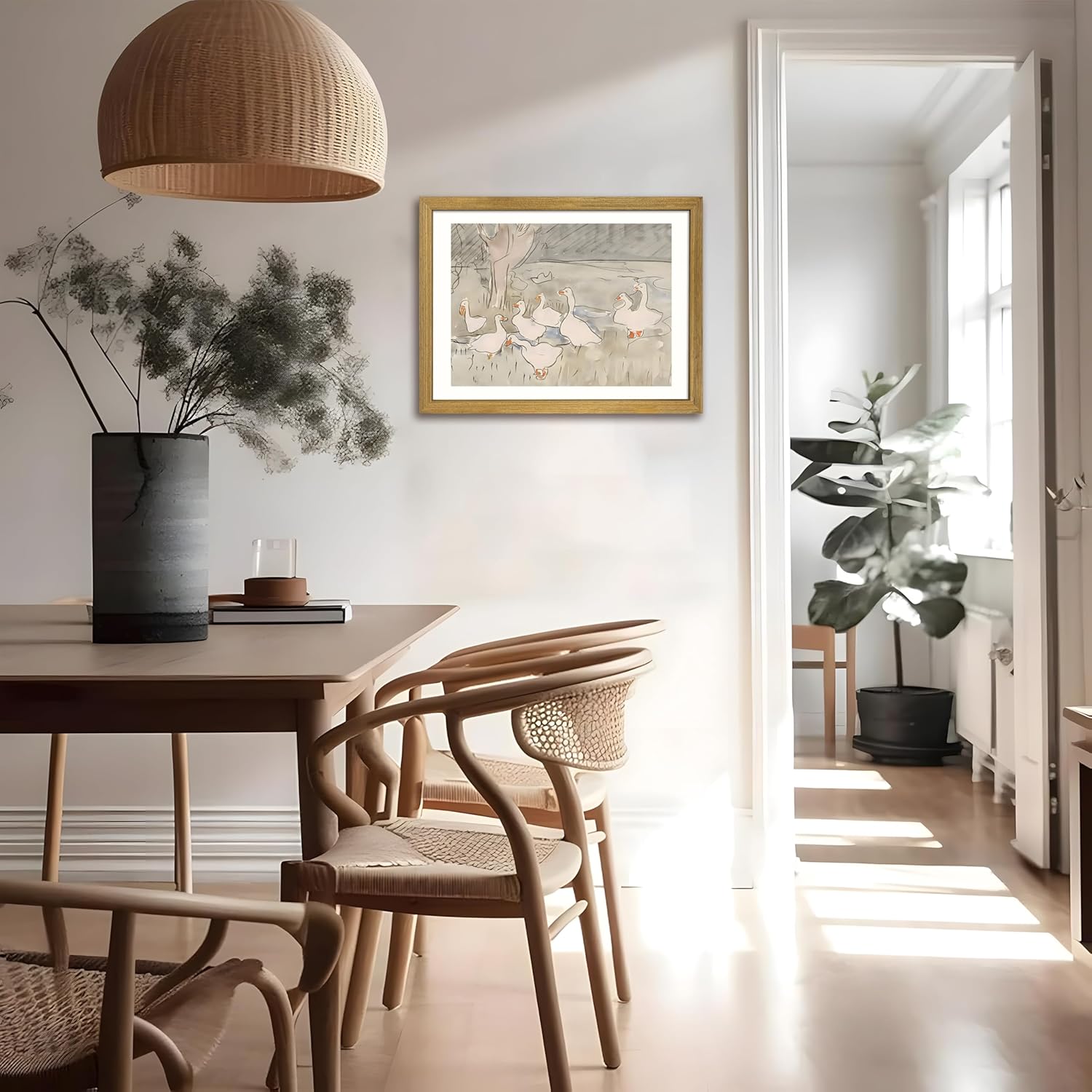 - Vintage Pastoral Aesthetic Wall Art – This charming Vintage Goose Wall Art features a soft watercolor painting of geese and ducks, bringing an old-world countryside charm to your interior. Its gentle lines and muted tones evoke calmness and rural nostalgia.