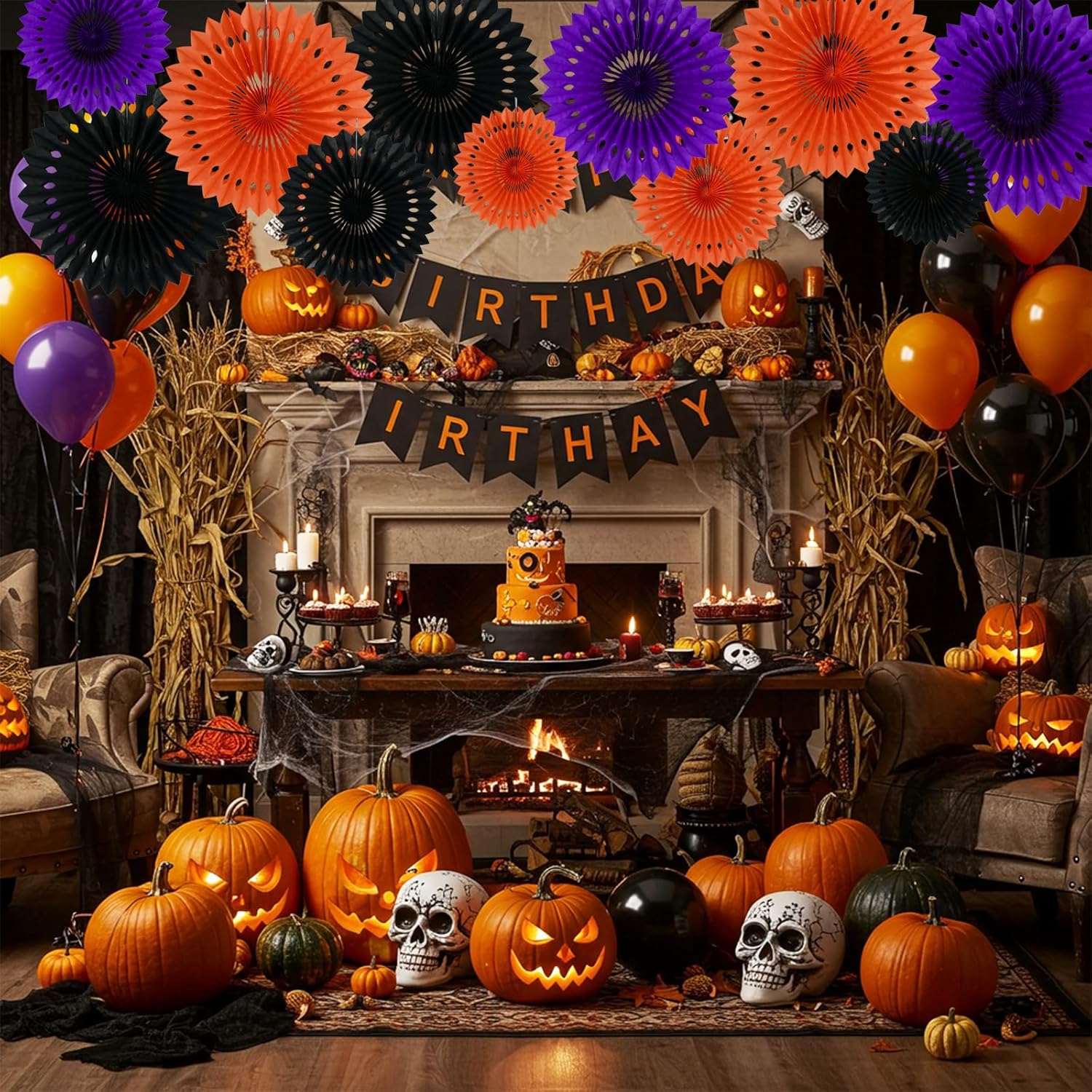 BEISHIDA Black Orange Purple Hanging Honeycomb Round Paper Fans Decoration Set for New Year Baby Shower Halloween Birthday Wedding Photo Booth Backdrops Anniversary Paper Party Supplies 11packs