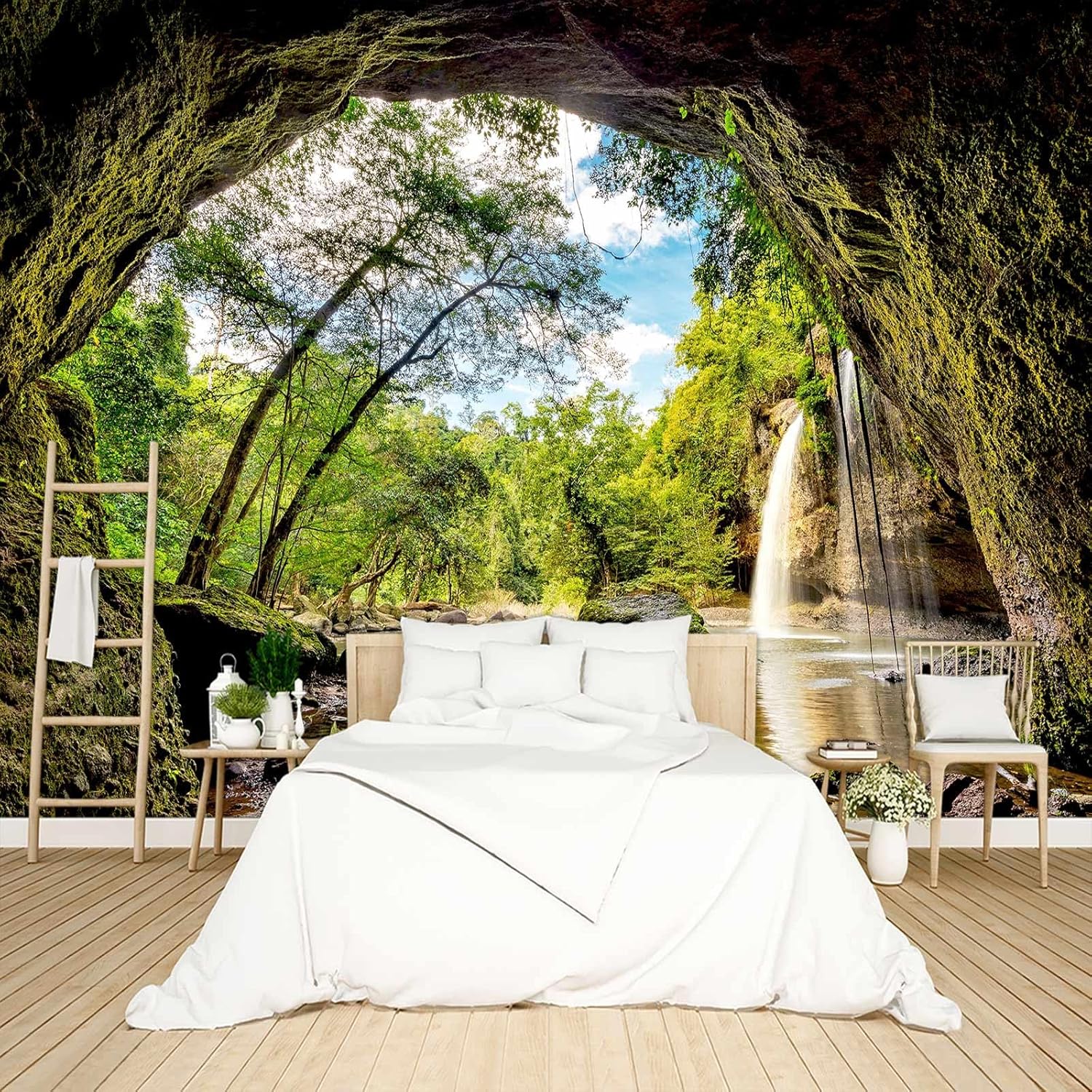 3D Space Cave Landscape Wallpaper Peel and Stick Wall Mural for Bedroom Living Room - 96"x137"