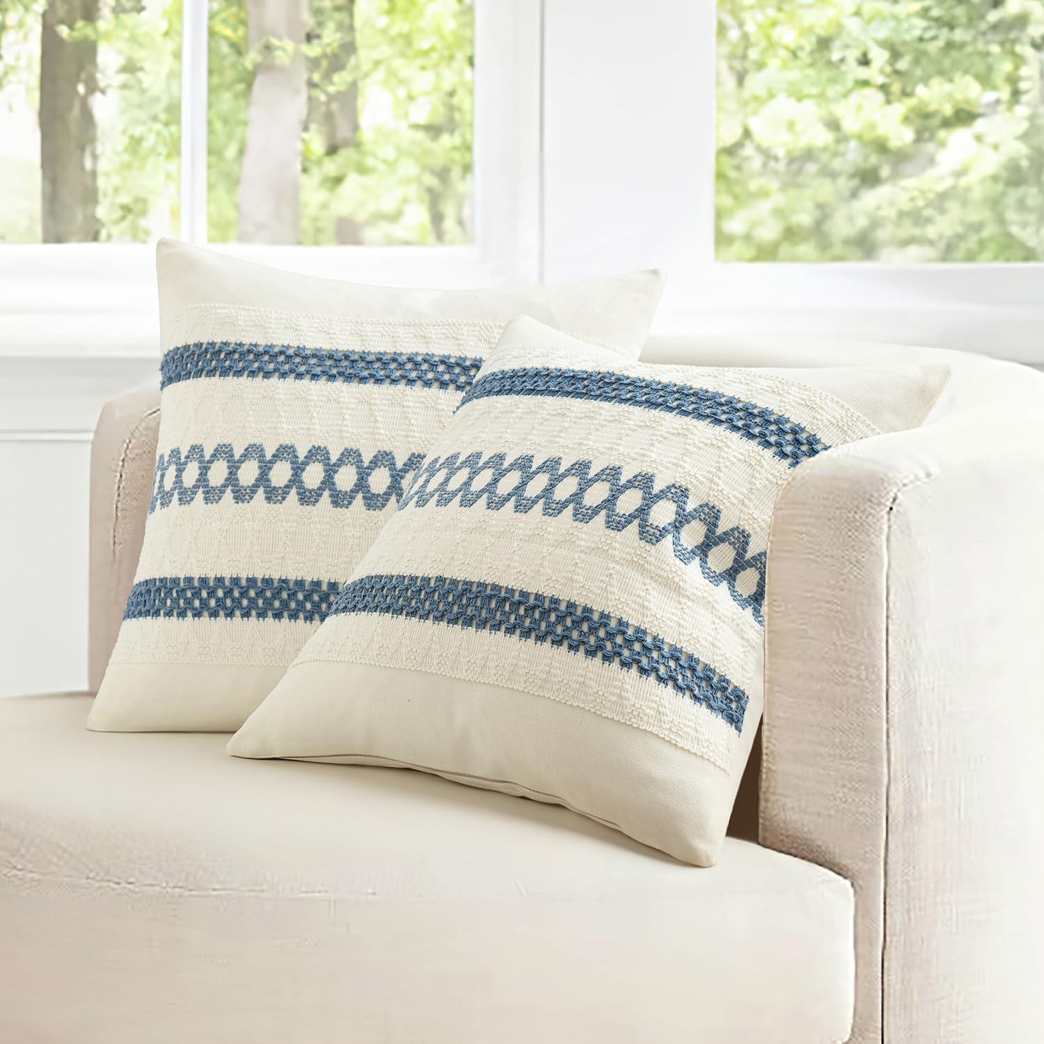 MIULEE Set of 2 Coastal Blue Boho Decorative Pillow Covers 16x16 Inch Farmhouse Rustic Couch Throw Pillows Modern Cotton Cushion Covers Retro Cute Macrame Woven Home Decor for Bed Sofa Chair