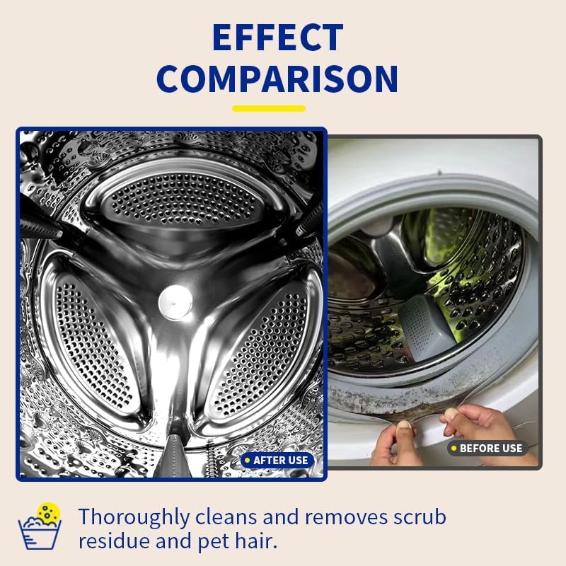 - Reduces Pet Hair Build-Up: By targeting and reducing pet hair accumulation, our cleaner helps maintain a hygienic washing machine environment and prevents clogs.