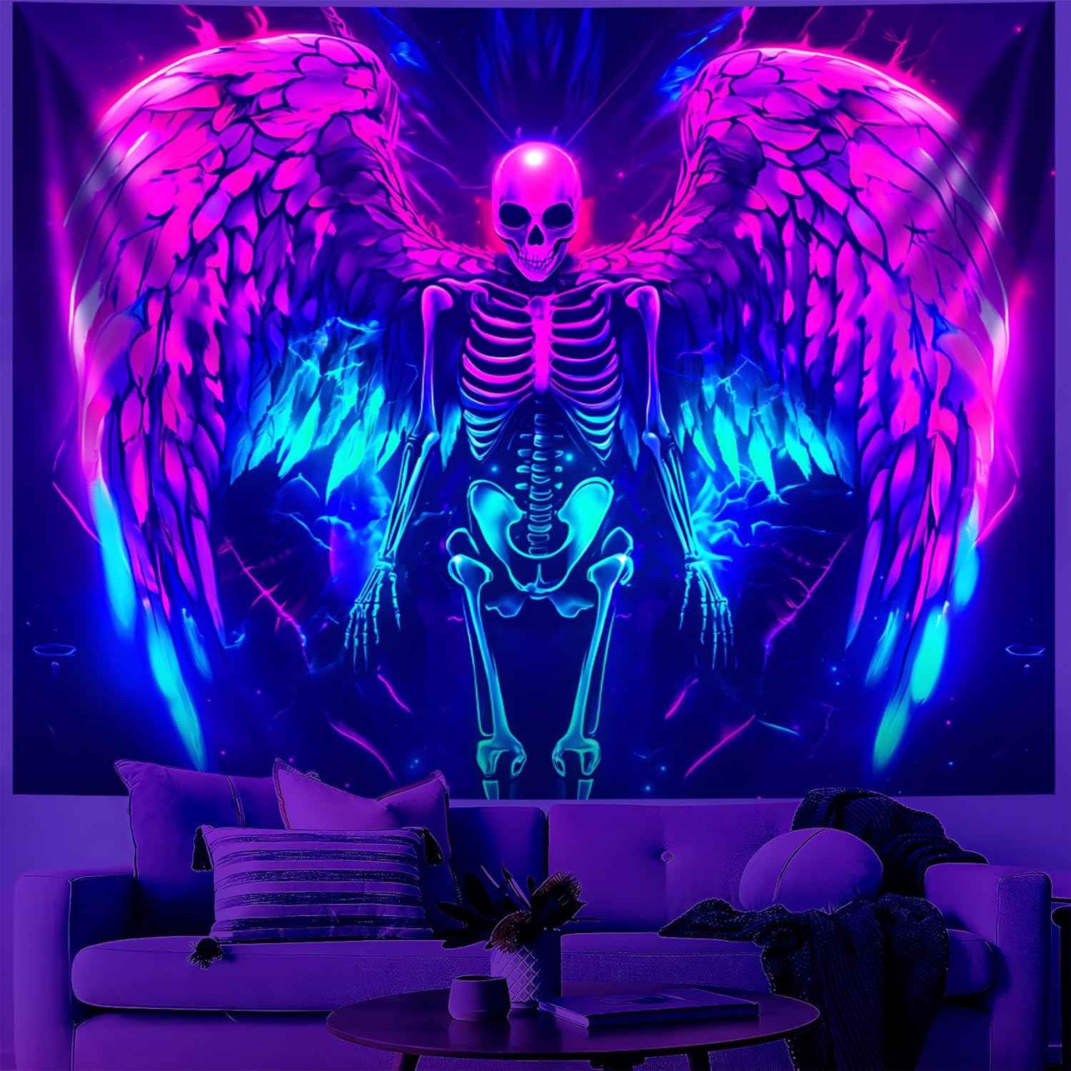 Blacklight Tapestry,WingTapestry Glow In The Dark,UV Reactive Black Light Upright Posters Wall Hanging for Bedroom Dorm Living Room Backdrop Decor (wing13, 59L" x 51W")