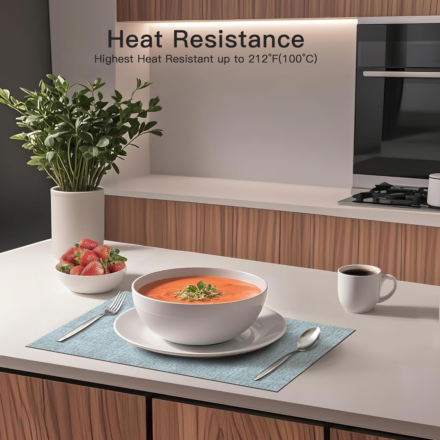 - 【Heat-Resistant & Multi-Functional】At 1.9mm thick and heat-resistant up to 212℉/100℃, these kichen tablemats protect your dinning table from hot dishes and spills. They also double as laptop pads, coffee maker mats, or workspace protectors—versatile for everyday living.