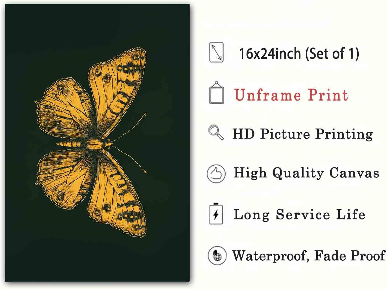 Gold Butterfly Paintings Green Gold Abstract Wall Art Moody Insect Artwork Vintage Butterfly Pictures Abstract Moody Animal Prints Wild Animals Painting Living Room Decor 16x24inch No Frame