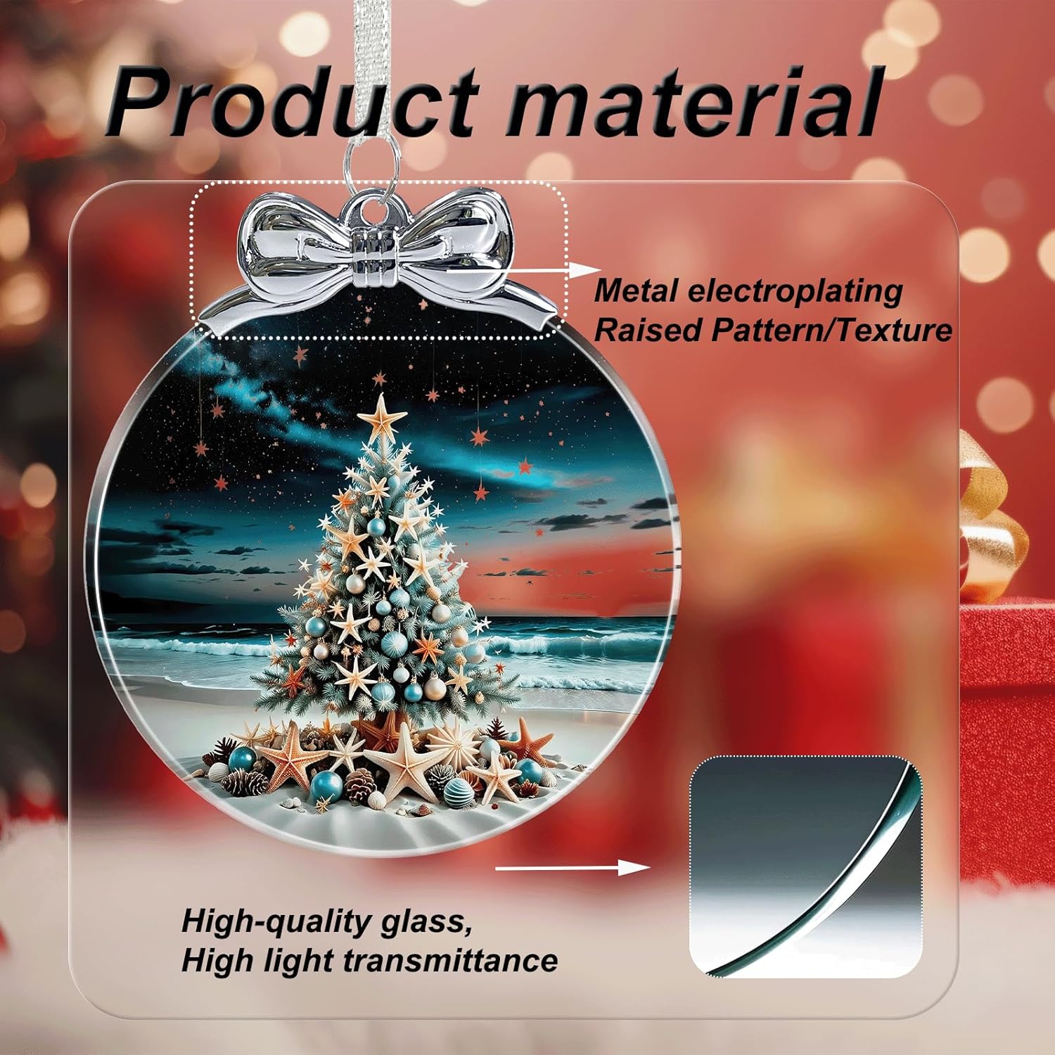 Seaside Christmas Tree Stained Glass Christmas Ornament - Hanging Ornaments for Christmas Tree Decorations - Holiday Keepsake Present Exchange Idea