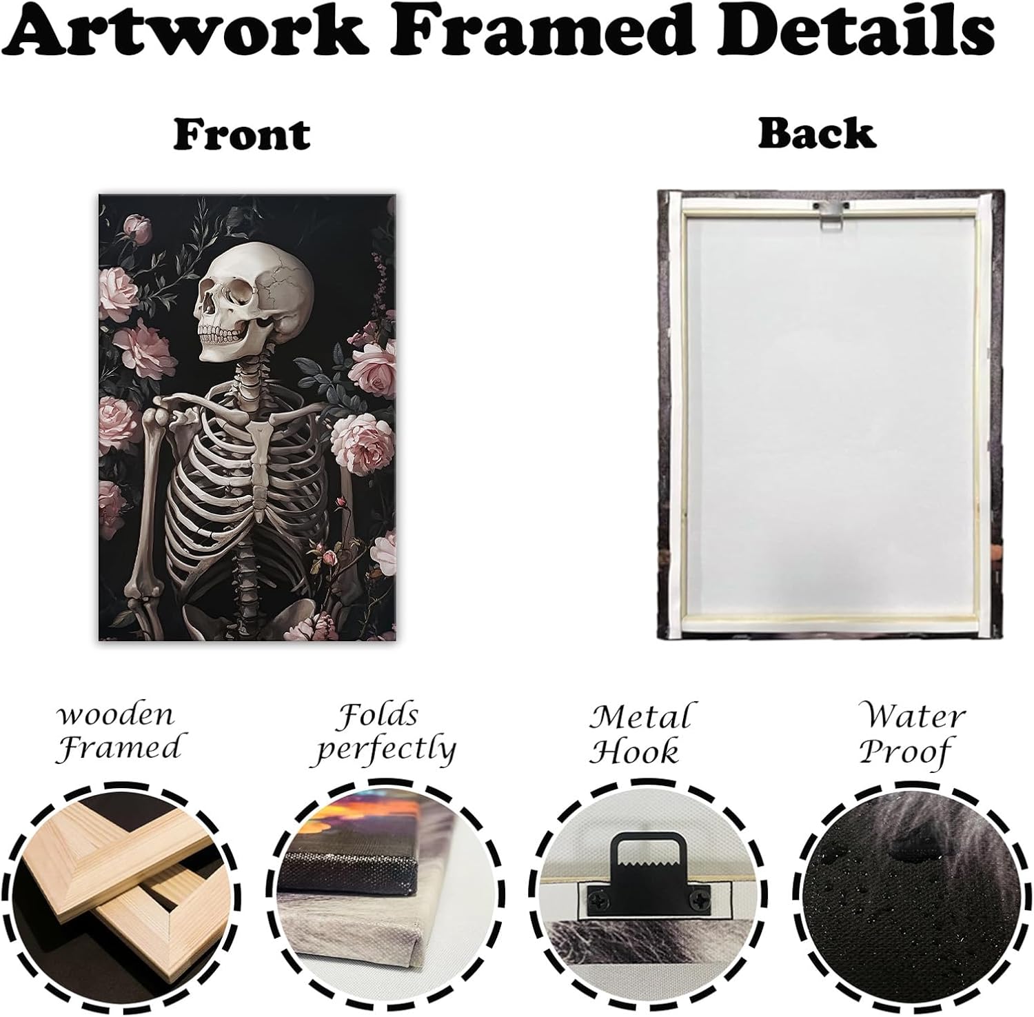 OAAPITI Skull Floral Wall Art Vintage Skeleton Portrait Canvas Print Dark Gothic Skull Art for Living Room Bedroom Home Wall Decor Ready to Hang(Artwork-10,24"x36")