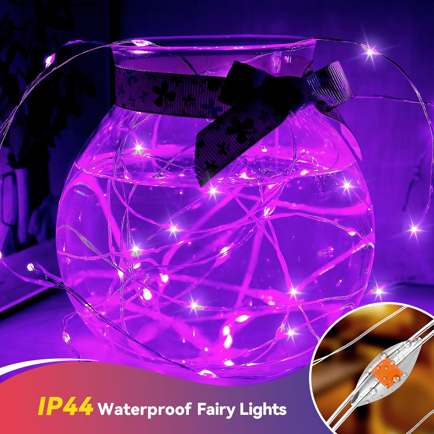 - Waterproof LED String Lights (IP44 Rated): Enjoy peace of mind using these led fairy lights in damp environments like bathroom greenery or outdoor trees—their waterproof design protects against splashes. (Note: Keep the battery box dry; position it under cover to avoid rain or standing water.)
