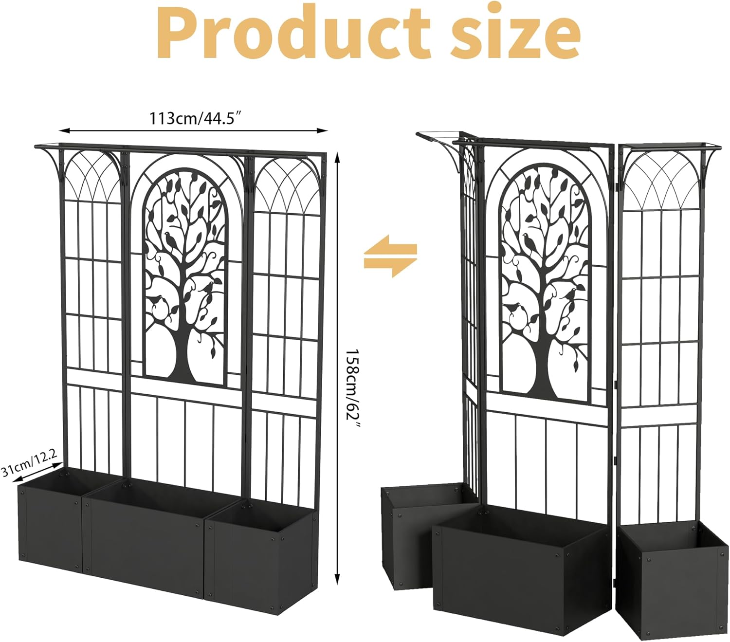 - 【Optimized Growing Space】3*12-inch deep separate planting boxes with privacy screen design promotes healthy root growth, The drainage holes at the bottom let the extra water drain out easily to maintain proper humidity. The trellis maximizes vertical growing space for abundant harvests
