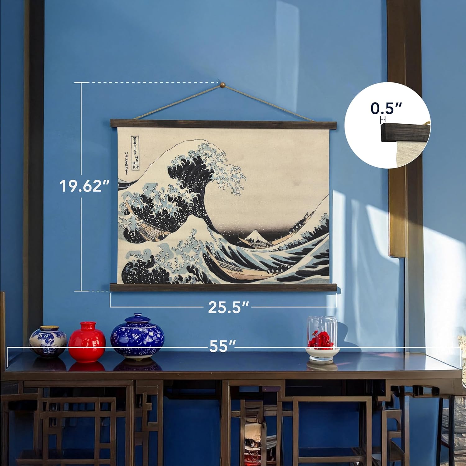 - ICONIC JAPANESE ART PRINT - Features The Great Wave off Kanagawa by Hokusai-a world-famous Japanese woodblock print known for its bold lines and deep symbolism.