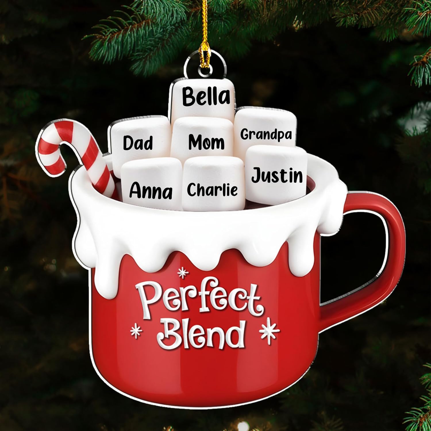 A Blend of Christmas Cheer Personalized Acrylic Ornament – Custom Name Charms Family Members up to 10 People, Holiday Decoration for Family Members & Friends