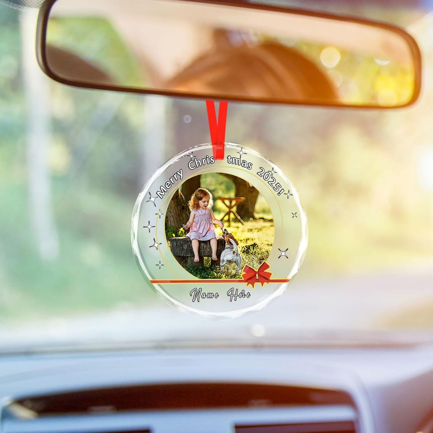 Personalized Christmas Ornaments, Custom Glass Ornament with Name/Photo/Text,Customized Christmas Tree Decor Gifts for Family, Dad, Mom, Him, Her, Couple, Red Ribbon