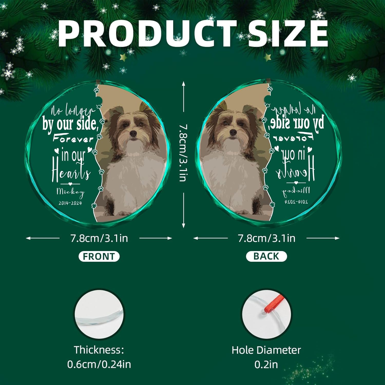 - The Perfect Sympathy Gift Choice โ This custom glass ornament featuring your petโs photo, name, and dates is an ideal tribute for a departed dog, cat, or beloved companion. Gazing at its glass pendant will make it feel like theyโre still by your side.
