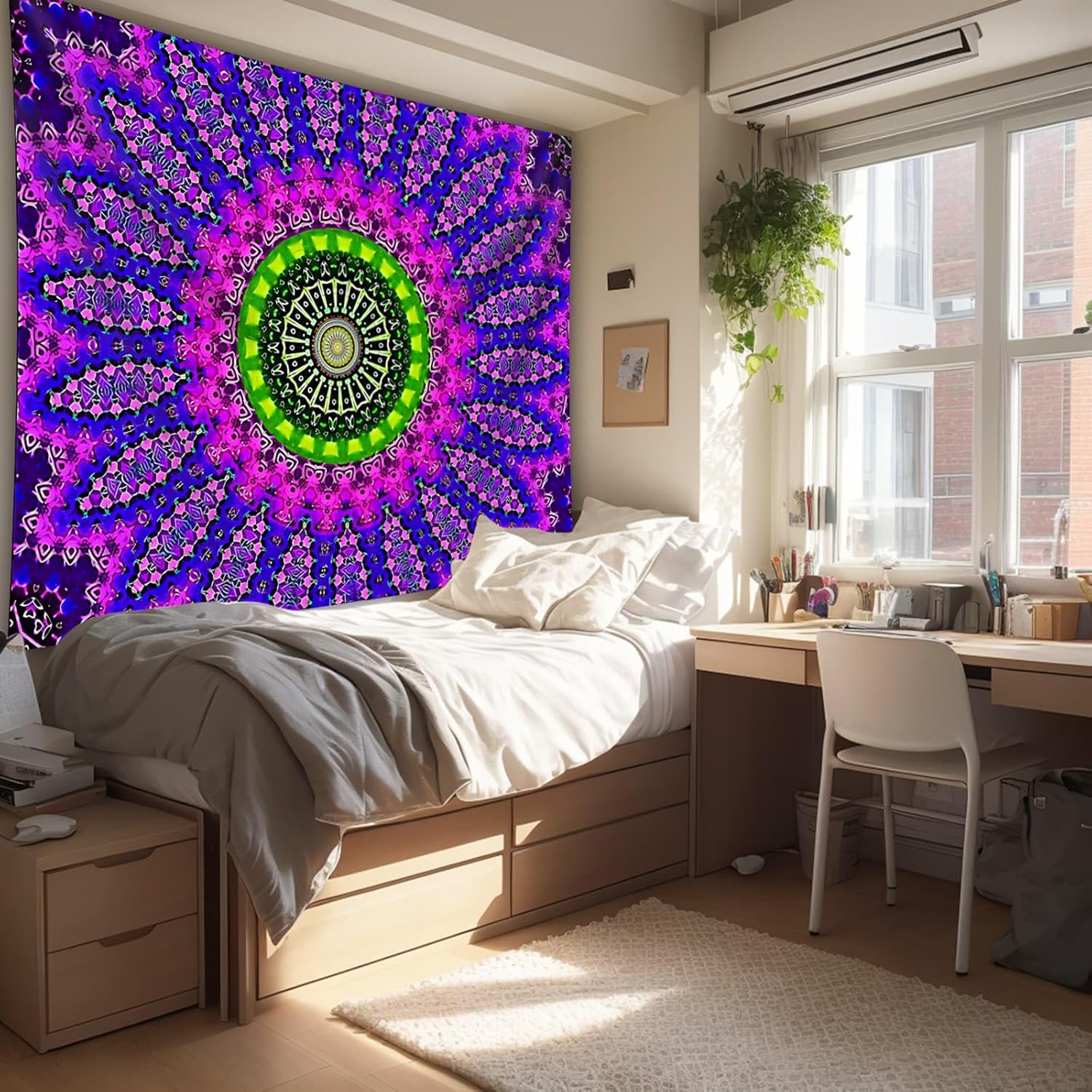 PSYHILAR Blacklight Mandala Tapestry for Bedroom, XL Black Light Posters for Adults and Teens, Red UV Reactive Aesthetic Bohemian Wall Art Decor (90 x 70 Inches)