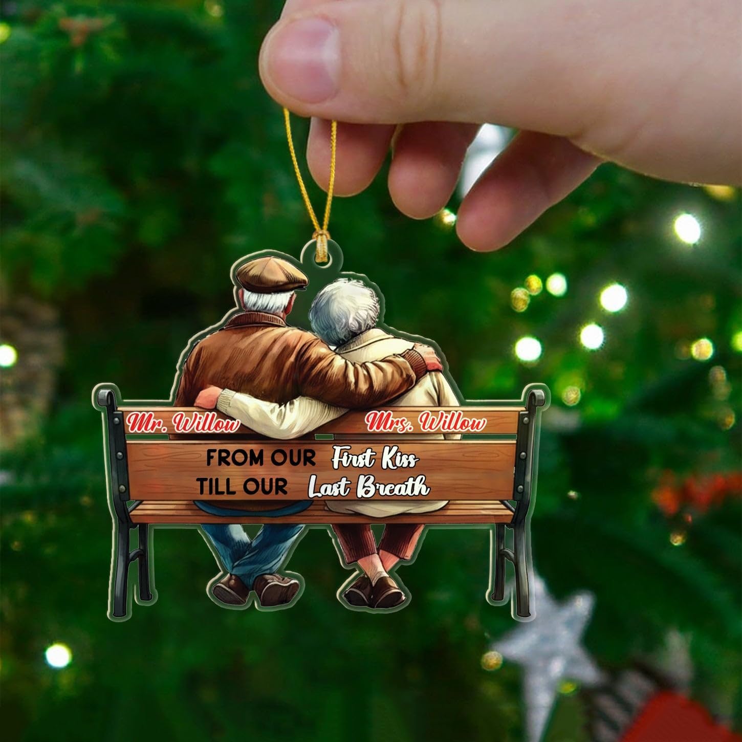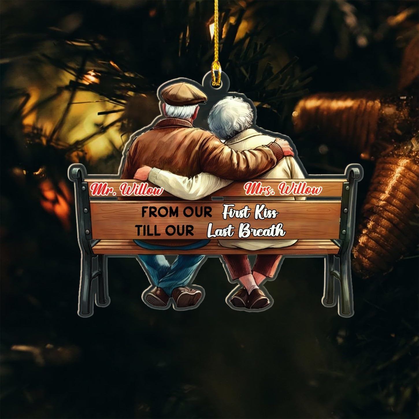 from Our First Kiss Till Our Last Breath Shaped Ornament Gift for Old Couple Husband Wife Dad Mom Grandparents, Personalized Name Mr & Mrs Together Christmas Ornament 2025, Custom Wedding Anniversary
